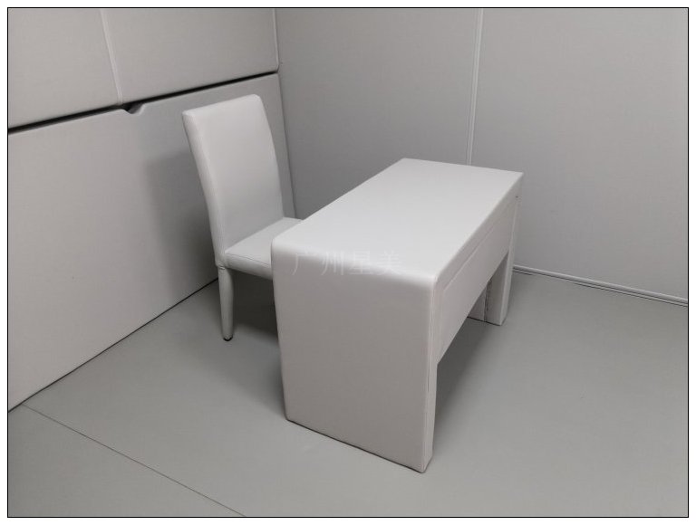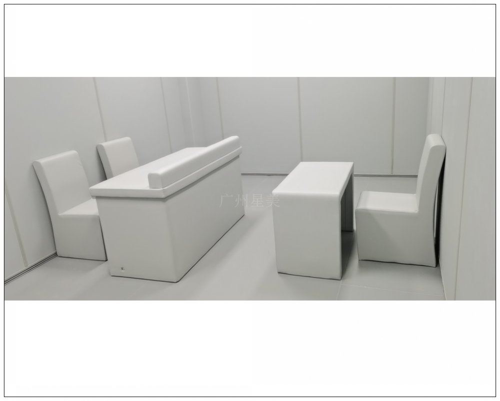 ?床具與座椅?:?防撞床具?:棕墊床(20001000400)采用雙層阻燃膠合板框架,邊緣加厚至50mm聚乙烯棉層,適配長期留置需求;療床(1950700650)配備記憶海綿與可升降鋼鐵支架,兼顧醫療檢查與安全防護?。
