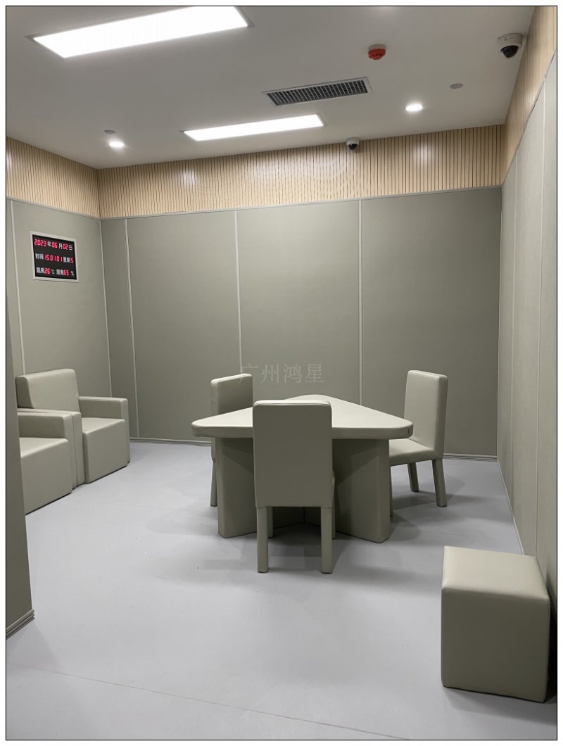 墻面、地面、桌椅、門窗等需進行軟包處理,采用防撞、防火材料,避免談話對象在突發情況下受傷,同時營造相對溫和的環境以緩解情緒。