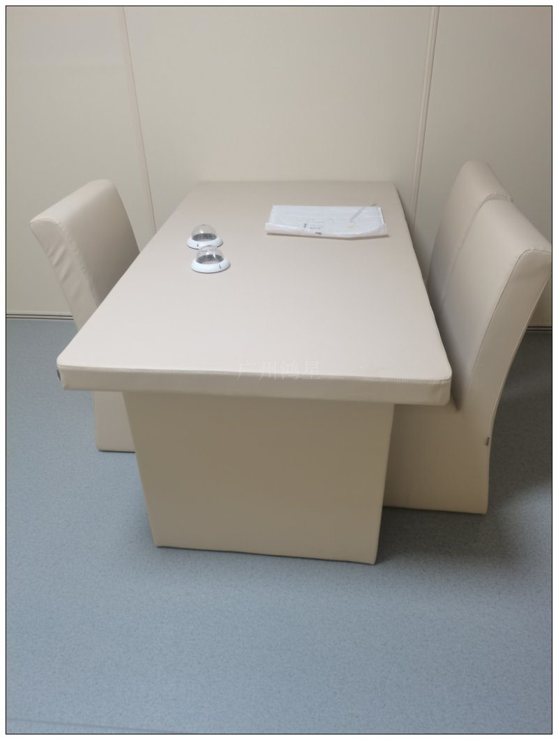 省級紀委留置室案例:部署1.8m加固型防撞桌,集成筆錄設備支架,搭配40mm厚墻面軟包,
