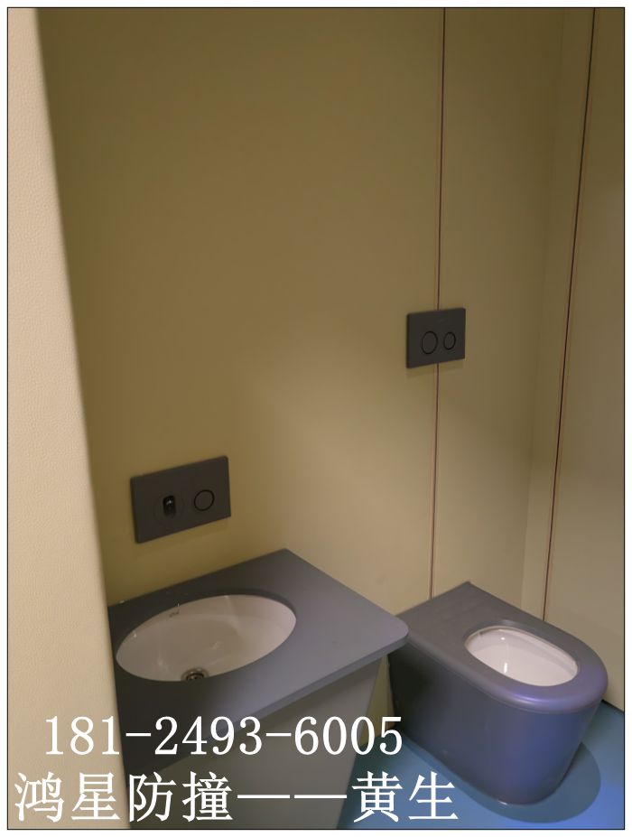 紀委監(jiān)委談話室留置室衛(wèi)浴間里的安全軟包馬桶及洗手盆是鴻星建設采用鑄模定制生產(chǎn)配套的硅膠套,將其包裹于法恩莎定制款的馬桶,從而達到防撞防水的效果。